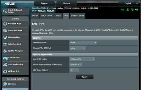 Moi, j'utilise un router Asus rt-ax88u pro, et tout ce que j'ai eu à faire pour le fonctionnement de la télé est son branchement dans le routeur, à part çà, il y a aucune configuration à faire.