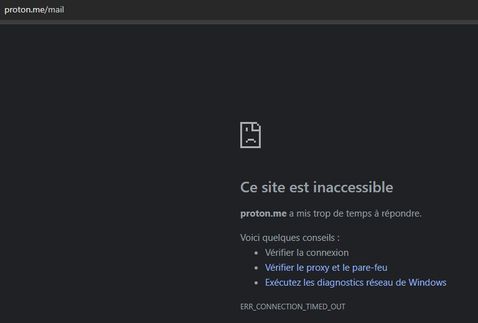 Le site Proton.me fonctionne bien chez moi à Longueuil. As tu fait un Traceroute pour voir à quel endroit ça bloque?