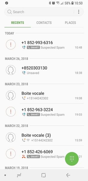 SamusArana écrit :Depuis quelques jours, je reçois souvent des appels du code régional 852, de Hong Kong. Mon S8 m'indique que l'appel est un " Suspected Scam " donc je ne répond pas mais ça devient fatiguant.