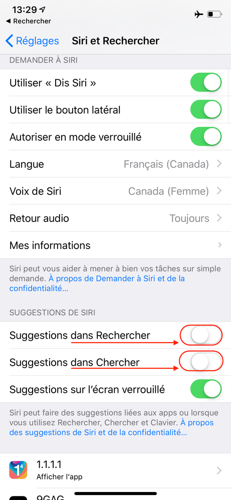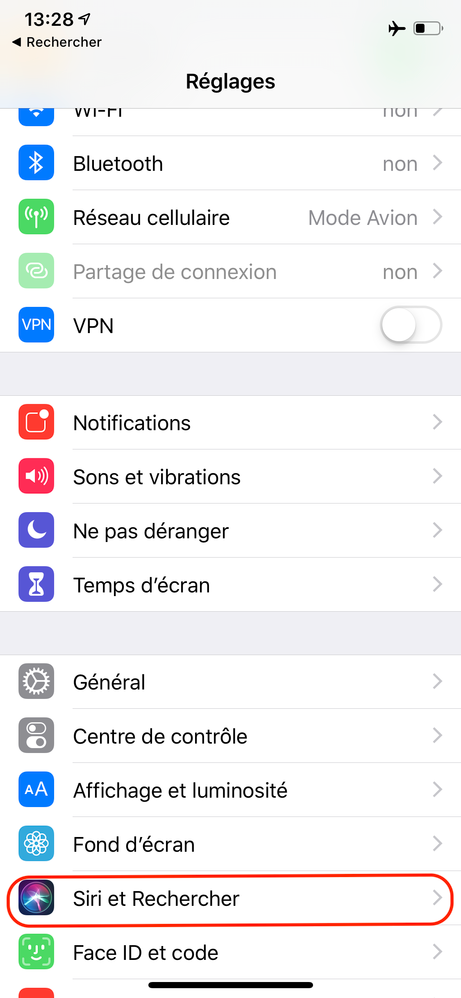 - Réglages > Siri et Rechercher