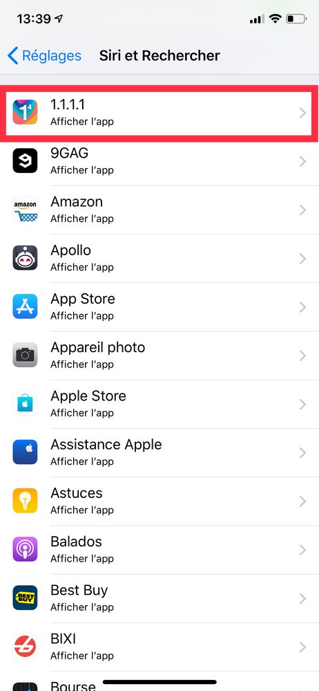 Dans la liste d'application sous l'étape 3, vous devez cliquer sur chaque application et décocher la fonction "Siri et les suggestions"