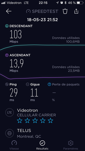 juste pour mon intérêt personnel et non pour faire un sondage scientifique, quelle vitesse obtenez vous au maximum sur le LTE de Vidéotron? je ne veux pas savoir pour Bell/Telus/Rogers/Alouette... ju...