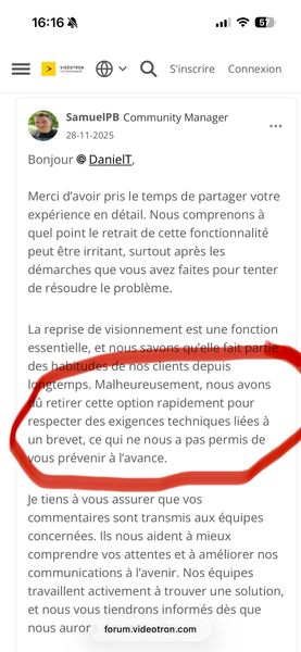 Je bien j'ai trou6la réponse qui ne veut pas être donnée par Vidéotron... Selon LaPresse la fonction pourrait être réactivée... En décembre 2026 lorsque le brevet sera échu