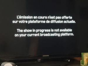 Bonjour! Il est possible que ce soit dû à des droits et licences de diffusion. Pour pouvoir vérifier cela avec vous, nous vous invitons à contacter notre soutien technique. Il sera également préférable d'avoir le message complet afin de pouvoir vérifier. https://videotron.com/nous-joindre