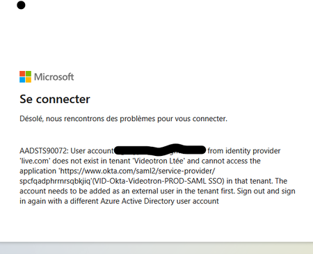 Bonjour Je suis mandataire pour l'internet de mes beaux-parent. lorsque j'essaie d'avoir acces au portail de videotron.com, je reçois une fenetre de microsoft pour me connecter chez microsoft. lorsque j'inscris le userid et mot de passe, j'ai la 2e fenetre qui ouvre. bien entendu que le compte n'est pas pour une entreprise, mais bien personnel. le but de ma demande est que c'est leurs fournir la facture de videotron puisqu'ils ne possèdent pas d'ordinateur a la maison. si dans la fenetre de microsoft, j'inscris mes coordonné je reçois ce message: j'ai essayé d'autres appareils qui ne sont pas connu dans mon reseau wi-fi, je suis en panne d'idée quoi faire. est-ce que qqun aurait eu le même problème que moi et a réussi a le régler ? Merci241Vues0like1CommentaireDétails manquants facture Hélix