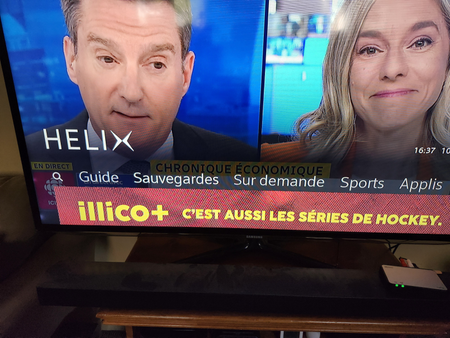 Bonjour, Pourriez-vous retirer cette publicité invasive lorsqu'on appuie sur la touche HELIX de la manette ? Elle nous empêche de voir quelle option est sélectionnée. On est déjà abonnés, on n'a besoin de personne pour nous dire quoi regarder. Merci.Résolu171Vues1like2CommentairesTélécommande hélix ne fonctionne plus